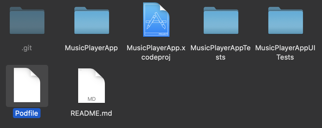 3. 2번의 명령어를 수행하고 나면, 프로젝트 경로에 아래와 같이 Podfile이 생성됩니다.