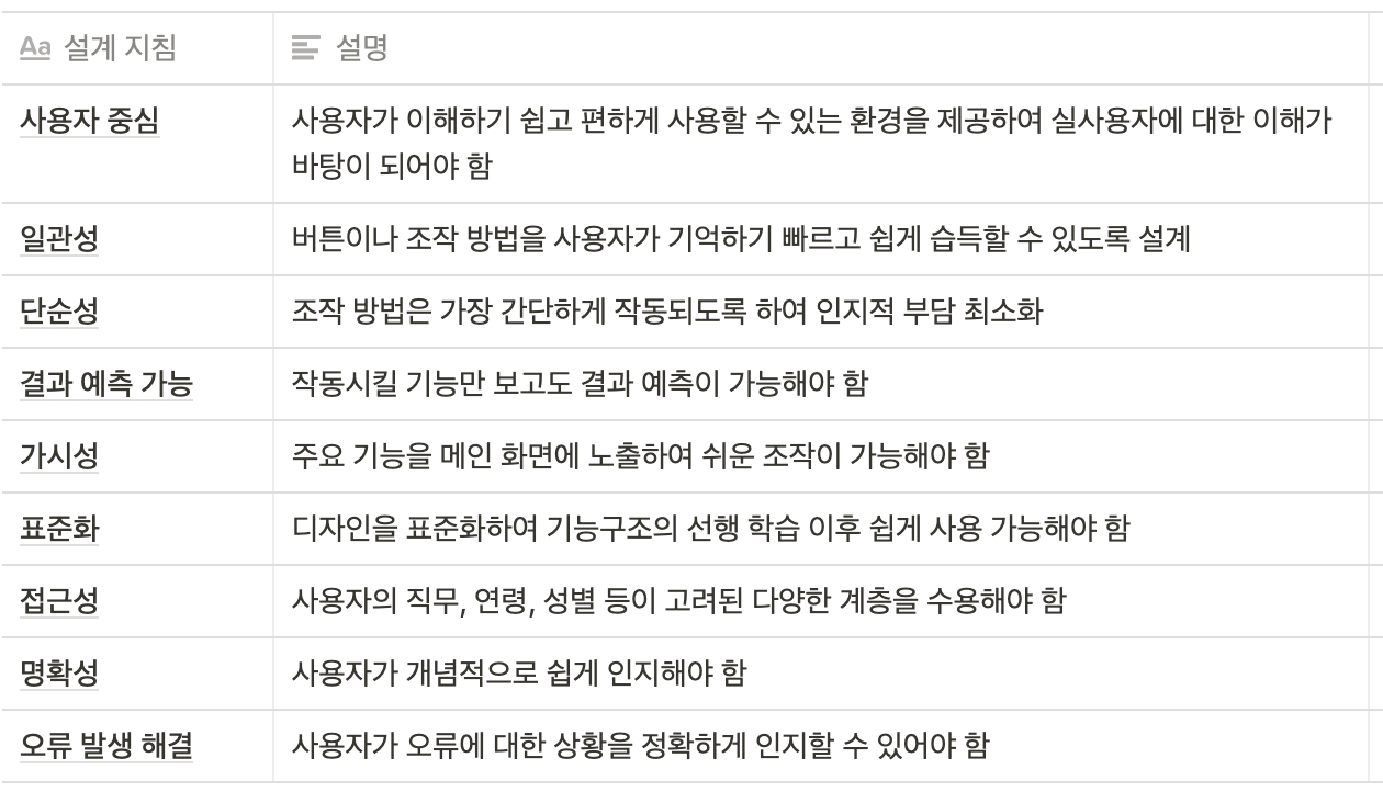 표준에 따라 사용자 인터페이스 설계, 개발 시 지켜야 할 세부사항을 규정하는 가이드라인
