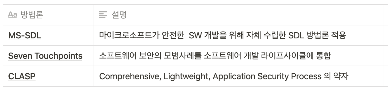 소스 코드 등에 존재하는 보안 취약점을 제거하고, 보안을 고려하여 기능을 설계 및 구현하는 등 소프트웨어 개발 과정에서 지켜야 할 일련의 보안 활동