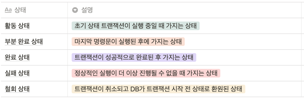 트랜잭션의 상태 (활부완실철)