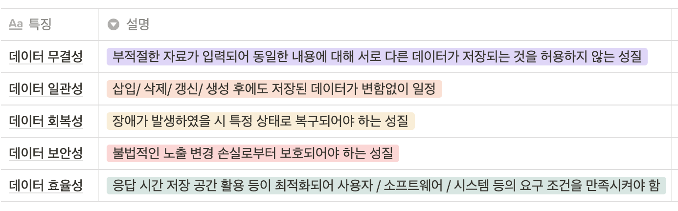 인가받지 않은 사용자로부터 데이터를 보장하기 위해 DBMS가 가져야 하는 특성이자, 데이터베이스 시스템에서 하나의 논리적 기능을 정상적으로 수행하기 위한 작업의 기본 단위