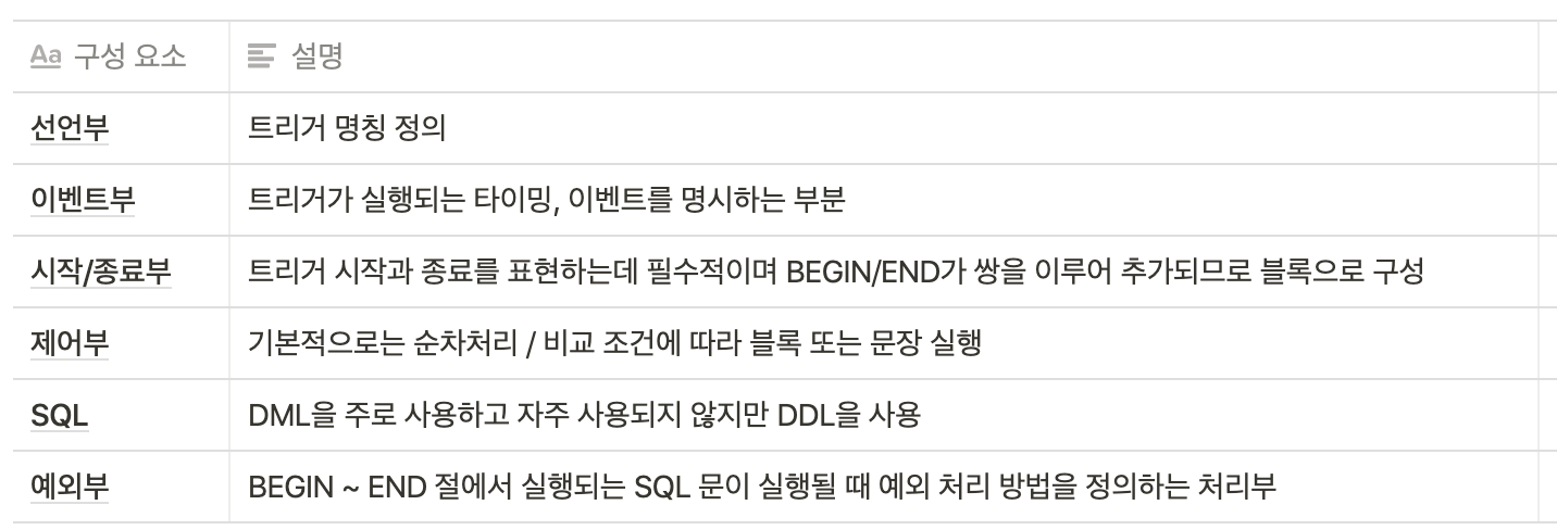 특정 테이블에 삽입, 수정, 삭제 등의 데이터 변경 이벤트가 발생하면 DBMS에서 자동적으로 실행되도록 구현된 프로그램